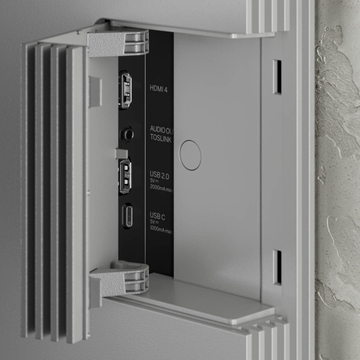 OLED. Il se distingue par un panneau arrière en véritable béton et un cadre en aluminium brossé. Entièrement