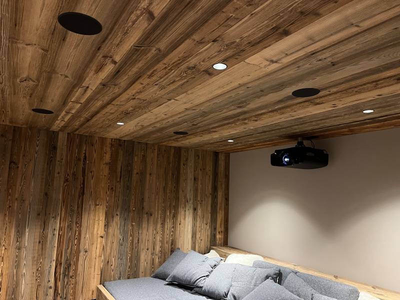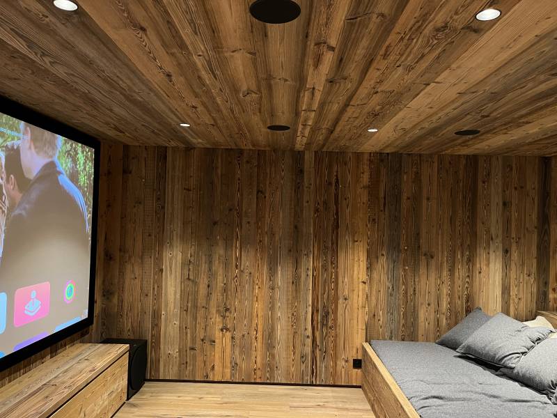 Installation d'une salle de cinéma privée dans un chalet à Megève.
