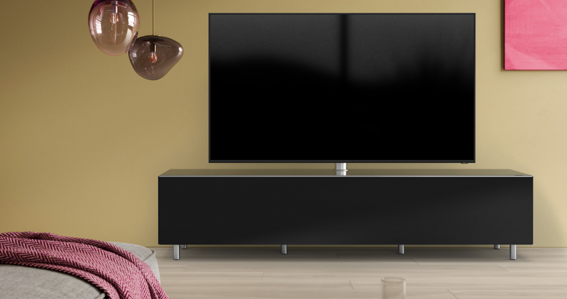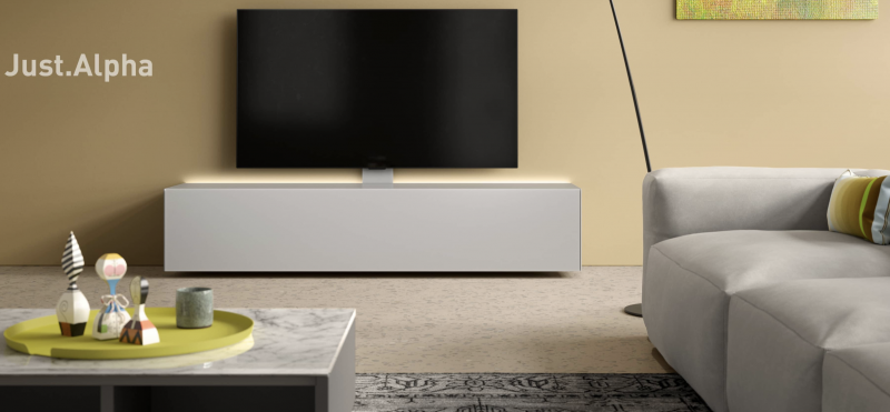 JUST est le meuble TV élémentaire de Spectral avec un plateau supérieur en verre résistant aux rayures avec 6 coloris et une large gamme d'options innovante et dynamique et surtout abordable.